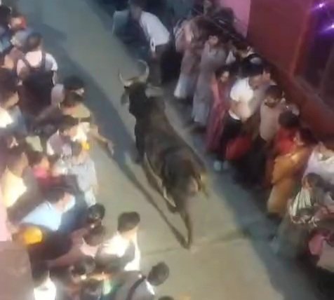 उत्तर प्रदेश : मथुरा में अहोई अष्टमी मेले में बड़ी लापरवाही, हजारों की भीड़ में घुसा आवारा साँड़, मचा हड़कंप