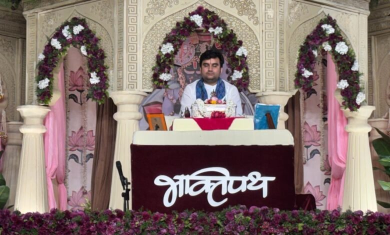 इंद्रेश उपाध्याय की वाणी से बरसा भक्ति रस प्रसिद्ध कथा प्रवक्ता इंद्रेश उपाध्याय महाराज के मुखारविंद से ठाकुर जी के विविध उत्सवों और लीलाओं का वर्णन सुनकर भक्त भाव-विभोर हो उठे। प्रथम दिवस पर निकुंज से अष्टसहचरी वृंद एवं श्रीजी के प्राकट्य की लीला का मंचन किया गया।