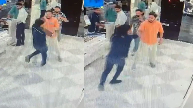 ग्रेटर नोएडा के Jagat Farm Greater Noida बाजार स्थित Lenskart के शोरूम में धार्मिक मुद्दे को लेकर ग्राहक और कर्मचारी के बीच विवाद इतना बढ़ गया कि मामला मारपीट तक पहुंच गया। पूरी घटना शोरूम में लगे सीसीटीवी कैमरों में कैद हो गई, जिसका वीडियो अब सोशल मीडिया पर तेजी से वायरल हो रहा है।