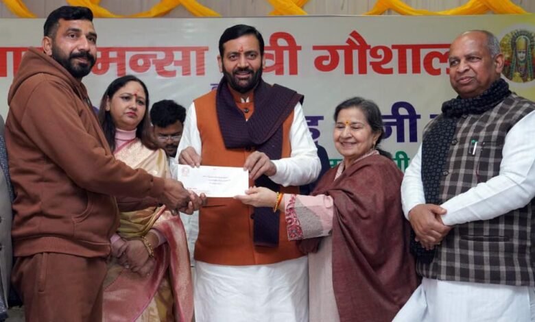 बाद में , मुख्यमंत्री श्री नायब सिंह सैनी अपनी पत्नी श्रीमती सुमन सैनी के साथ पंचकूला स्थित श्री माता मनसा देवी मंदिर परिसर की गौशाला में पहुंचे। उन्होंने वहां गायों को चारा खिलाया और विधिवत पूजा-अर्चना कर प्रदेश की सुख-समृद्धि और जनकल्याण की कामना की।
