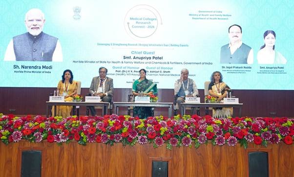 नई दिल्ली। स्वास्थ्य अनुसंधान को मजबूत बनाने के उद्देश्य से वीरवार को नई दिल्ली के सुषमा स्वराज भवन में ‘मेडिकल कॉलेजेज रिसर्च कनेक्ट 2026’ का उद्घाटन किया गया। यह दो दिवसीय राष्ट्रीय सम्मेलन 26 और 27 फरवरी तक आयोजित किया जा रहा है, जिसमें देशभर के 100 से अधिक मेडिकल कॉलेजों के शोध इकाइयों के प्रतिनिधि भाग ले रहे हैं।