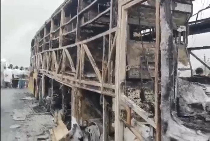 New Delhi (मिताली चंदोला, एडिटर, स्पेशल प्रोजेक्ट्स) : आंध्र प्रदेश के चिन्ना टेकुर गाँव के पास एक बस अचानक आग की चपेट में आ गई, जिसमें कई यात्रियों की मौत हो गई। स्थानीय अधिकारियों के अनुसार, फायर टेंडर और पुलिस ने तुरंत घटनास्थल पर पहुंचकर आग पर काबू पाने और बचाव कार्य शुरू किया। प्रारंभिक रिपोर्टों के अनुसार मृतकों की संख्या काफी है, जबकि कुछ घायल यात्रियों को तुरंत अस्पताल में भर्ती कराया गया।