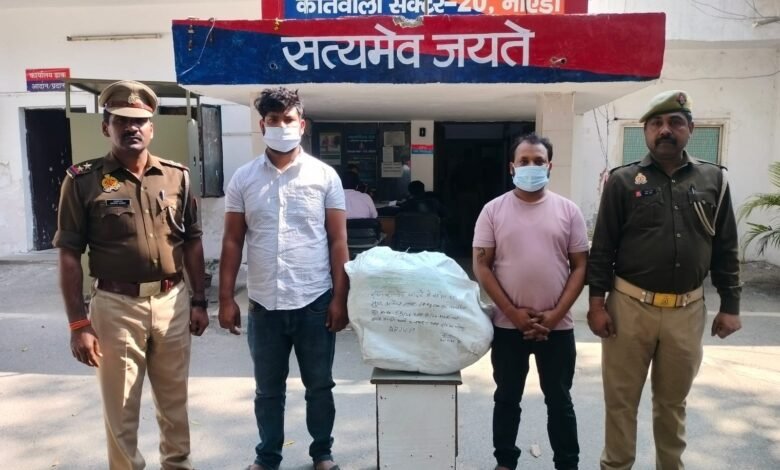 नोएडा। सेक्टर-20 थाने की पुलिस ने बुधवार को सेक्टर-17 में छापेमारी कर गांजा तस्करी के आरोप में दो युवकों को गिरफ्तार किया। उनके कब्जे से कुल 10 किलो 500 ग्राम गांजा बरामद हुआ, जिसकी कीमत लगभग एक लाख रुपये आंकी गई है। गिरफ्तार आरोपियों की पहचान 28 वर्षीय उदय राय और 30 वर्षीय अर्जुन कुमार के रूप में हुई।