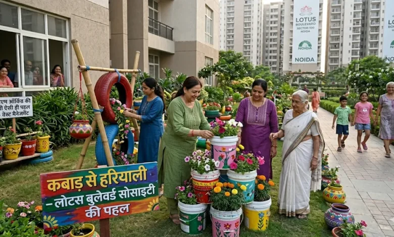 नोएडा की हाईराइज सोसाइटियों में रहने वाली महिलाओं ने पर्यावरण संरक्षण की दिशा में एक अनोखी पहल करते हुए कबाड़ के सामान से हरियाली और सुंदरता का नया संसार खड़ा कर दिया है। वेस्ट मैनेजमेंट और रीसाइक्लिंग के जरिए सोसाइटी के खाली स्थानों को रंग-बिरंगे फूलों और आकर्षक डिजाइन से सजाया गया है, जिससे पूरा माहौल खुशनुमा हो गया है।