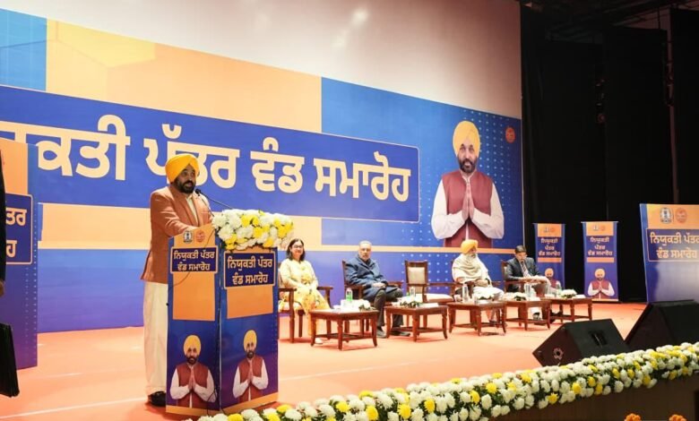 Chandigarh News : आज मोहाली में विभिन्न विभागों के नव-नियुक्त 916 युवाओं को नियुक्ति पत्र वितरित करते हुए मुख्यमंत्री भगवंत सिंह मान ने कहा कि इन नियुक्तियों से ‘मिशन रोज़गार’ के तहत बिना किसी रिश्वत या सिफ़ारिश के सरकारी नौकरियाँ देने के लिए ‘आप’ सरकार की प्रतिबद्धता सिद्ध होती है।