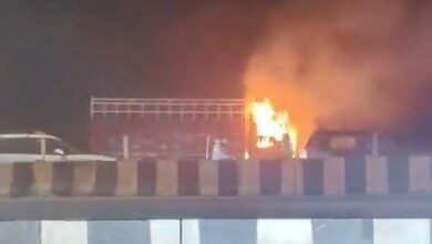 उत्तर प्रदेश : हापुड़ में चलते कैंटर के केबिन में लगी आग, चालक बाल-बाल बचा