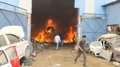 उत्तर प्रदेश : हापुड़ में स्क्रैप फैक्ट्री के गोदाम में लगी भीषण आग, दमकल टीम ने पाया काबू