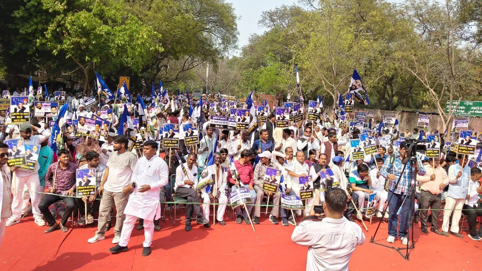 विश्वविद्यालय अनुदान आयोग (UGC) कानून को लागू कराने के लिए आज अपनी जनता पार्टी के राष्ट्रीय अध्यक्ष और उत्तर प्रदेश के कद्दावर नेता स्वामी प्रसाद मौर्य के नेतृत्व में दिल्ली के जंतर मंतर पर जोरदार प्रदर्शन आयोजित किया गया। इस मौके पर पार्टी के हजारों कार्यकर्ता शामिल हुए और केंद्र सरकार तथा भारतीय जनता पार्टी (BJP) के खिलाफ जमकर नारेबाजी की।
