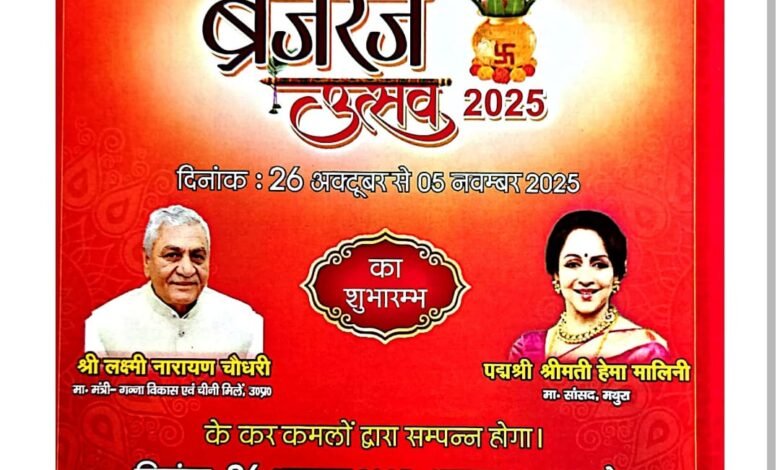 धौली प्याऊ स्थित रेलवे ग्राउंड पर 26 अक्टूबर से शुरू हो रहे ब्रज रज उत्सव में इस वर्ष भक्ति संगीत के साथ ब्रज संस्कृति की झलक भी देखने को मिलेगी। यह आयोजन उत्तर प्रदेश ब्रज तीर्थ विकास परिषद, पर्यटन विभाग और जिला प्रशासन के संयुक्त तत्वावधान में किया जा रहा है।