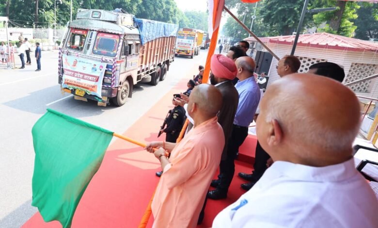 उत्तर प्रदेश : मुख्यमंत्री योगी आदित्यनाथ ने पंजाब के बाढ़ प्रभावित किसानों के लिए 1000 क्विंटल गेहूं बीज सहायता वाहनों को किया रवाना