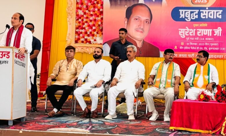 प्रबुद्ध संवाद कार्यक्रम में मुख्य अतिथि उत्तर प्रदेश सरकार में पूर्व मंत्री आदरणीय सुरेश राणा रहे। कार्यक्रम की अध्यक्षता भाजपा जिला अध्यक्ष विकास चौहान ने की और संचालन भाजपा प्रबुद्ध संवाद के संयोजक जिला महामंत्री संजय गुर्जर ने किया। मुख्य अतिथि पूर्व मंत्री सुरेश राणा ने अपने संबोधन में कहा कि “प्रधानमंत्री नरेंद्र मोदी जी के नेतृत्व में भारत आज दुनिया में एक सशक्त और गौरवशाली राष्ट्र के रूप में स्थापित हुआ है।”