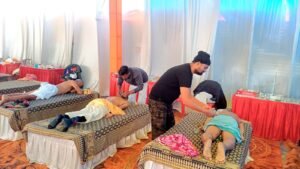 आयुर्वेद न्यूरो थेरेपी कैंप में रीढ़ की हड्डी और जोड़ों में दर्द के मरीजों का निःशुल्क इलाज किया जा रहा है। डॉ मनोज शर्मा के निर्देशन में लगाए गए आयुर्वेदिक न्यूरो थेरेपी शिविर में सैकड़ो लोग लाभान्वित हो रहे हैं। साथ ही 108 श्री राम देश विदेश से द्वारा श्री राम नाम जप के मध्य आहुति दी जा रही है।