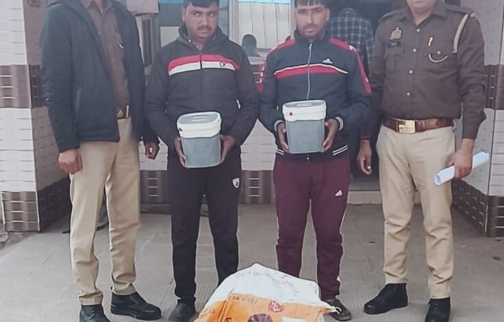 Mathura News : मथुरा के थाना कोसीकलां पुलिस ने सोमवार सुबह ग्राम शाहपुर में छापेमारी कर अवैध रूप से पशु कटान कर रहे दो अभियुक्तों को गिरफ्तार किया है। पुलिस ने मौके से 75 किलोग्राम भैंस के पड्डे का मांस बरामद किया है। आरोपी बिना किसी लाइसेंस के दुकान के भीतर पशुओं का कटान कर मांस बेचने की तैयारी में थे।
