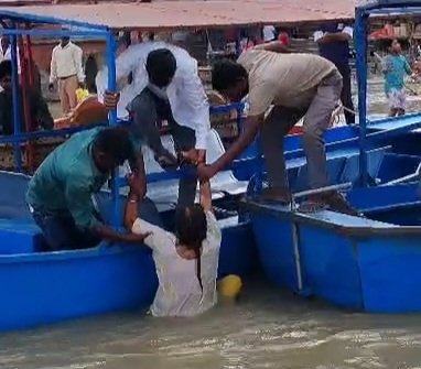 महिला को कूदता देखकर गोताखोर बंटी, भोलू और शौराज मोटरबोट लेकर गंगा में निकल गए। उन्होंने महिला को सकुशल गंगा से बाहर निकाल लिया और पुलिस को सूचना दी।
