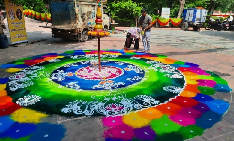 उत्तर प्रदेश : रसखान समाधि स्थल पर सांझी महोत्सव में छायी रंगोली की खूबसूरती