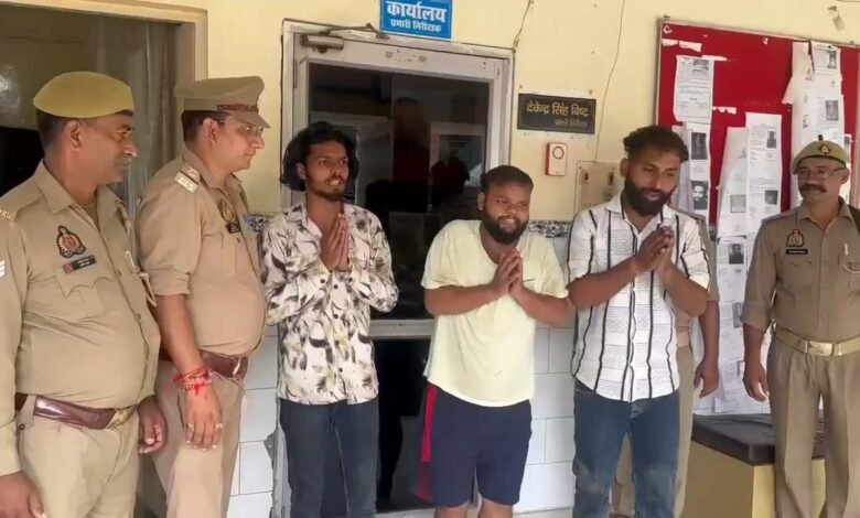 Hapur News : हापुड़ कोतवाली पुलिस ने तीन मनचलों को गिरफ्तार कर लिया है, जिन्होंने एक छात्रा के साथ सड़क पर छेड़खानी की थी। आरोपियों ने पुलिस के सामने हाथ जोड़कर माफी मांगी और कहा, “हमसे गलती हो गई, सारी बहनें हमारी बहनें हैं, हमें माफ कर दो, आगे से ऐसी गलती नहीं करेंगे।”