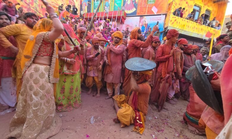उत्तर प्रदेश : बरसाना की रंगीली गली में बरसीं ‘प्रेम की लाठियाँ’, नंदगाँव के हुरियारों पर चढ़ा राधा रानी की भक्ति का रंग