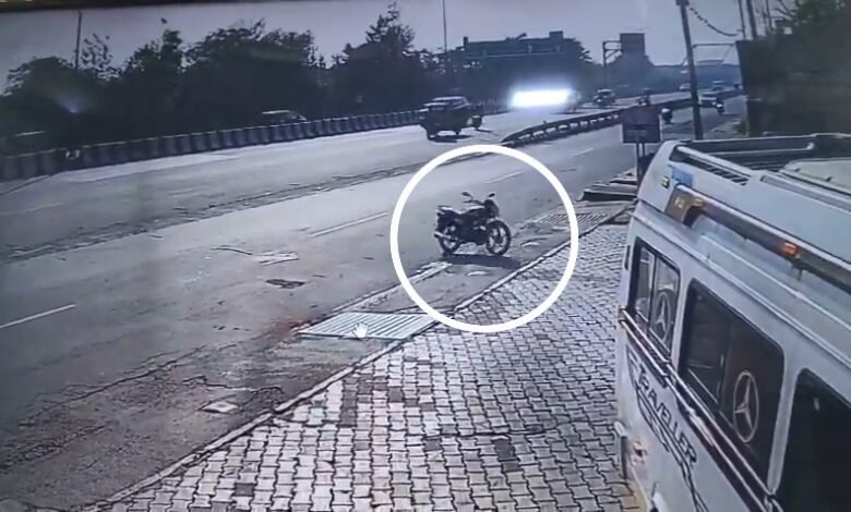 Hapur News : हापुड़ के पिलखुवा कोतवाली क्षेत्र के अंतर्गत राष्ट्रीय राजमार्ग पर शिवा ढाबा के पास शनिवार को एक तेज रफ्तार बाइक अचानक असंतुलित होकर रेलिंग से टकराई, जिसमें दो लोग सड़क पर गिरकर घायल हो गए। बाइक चालक के बिना ही करीब 50 मीटर तक आगे बढ़ती हुई ढाबा पार्किंग में घुस गई। घटना सीसीटीवी कैमरे में साफ कैद हुई है।